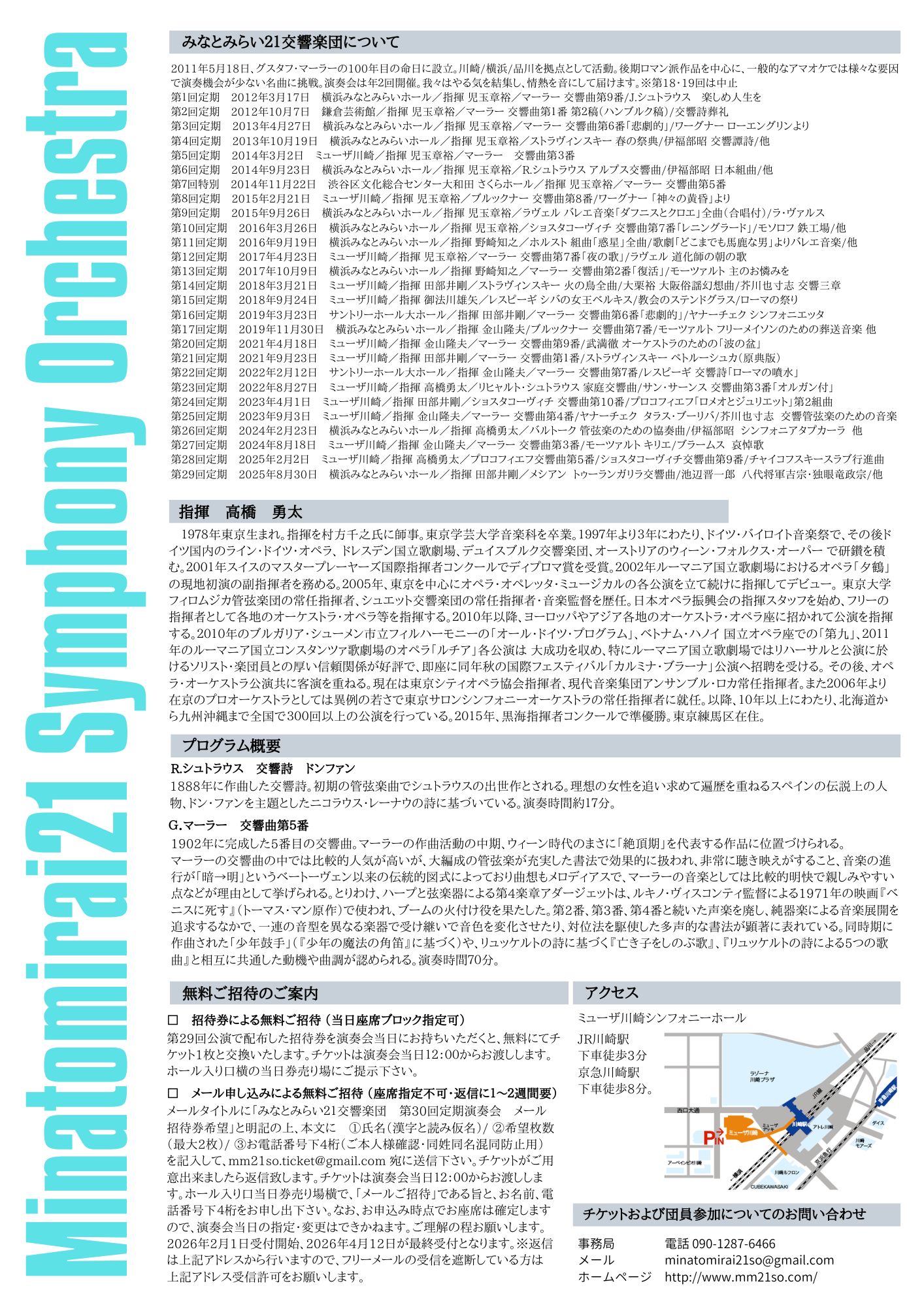 | 曲目 | G.マーラー 交響曲第8番「千人の交響曲」 他 |